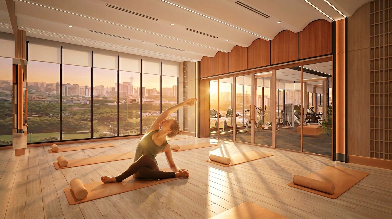 Toàn bộ tổ hợp được bao bọc bởi hệ kính Low-E tràn viền, mở ra tầm nhìn Panorama ôm trọn đường chân trời tuyệt mỹ. Với hệ thống trang thiết bị tối tân nhập khẩu, từng nhịp vận động tại đây không còn là nghĩa vụ rèn luyện khô khan, mà là một màn trình diễn thăng hoa đầy cảm hứng. Nơi lượng lớn endorphin được giải phóng, tái tạo sinh lực dồi dào để chủ nhân sẵn sàng chinh phục những đỉnh cao mới.